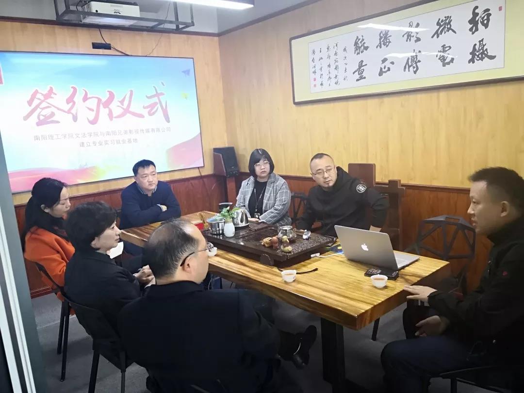 李慧院长从专业设置、教学力量以及学生素质培养等方面介绍了文法学院的基本情况,就双方合作的意义进行了阐述。王康康介绍了南阳兄弟影视传媒有限公司的发展历史和业务情况,表示对校企双方的合作充满期待。另外与南阳因扎吉电子商务的彭飞就关于学生实习前置,就业指导等进行了深入洽谈,与文法学院达成合作意向,将于近期内进行合作签约。