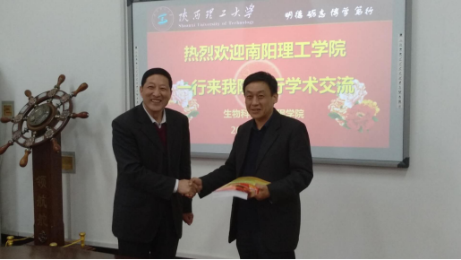 会后,应陕西理工大学生物学与工程学院薛书记邀请,以南阳理工学院为代表的南阳黄酒考察组来到陕西理工大学生物学与工程学院进行考察和交流。双方就办学历史与现状、学科建设、师资队伍等方面进行了深入的交谈,双方表示今后将会在党建工作、学科与专业建设、研究生培养等方面进一步合作和交流。