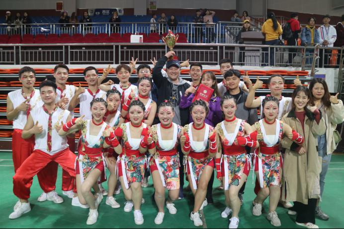 张仲景国医国药学院啦啦操队也为现场观众带来了一场视觉盛宴。队员们像一个个舞动的精灵踏乐而来,他们的步伐动作随着起伏的音乐在赛场上恣意变换,张扬着青春的活力。他们热情洋溢,动作灵活,一次次地腾空跃起、一次次地旋转飞舞,都如英勇的舞狮焕发出向上的力量。经过激烈的角逐,我院力夺桂冠,获得比赛特等奖荣誉。