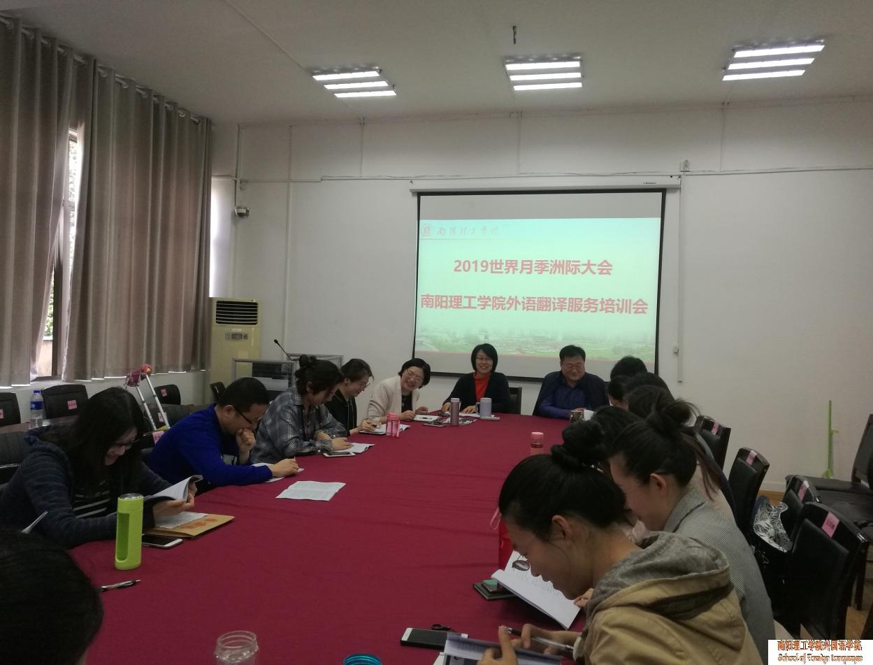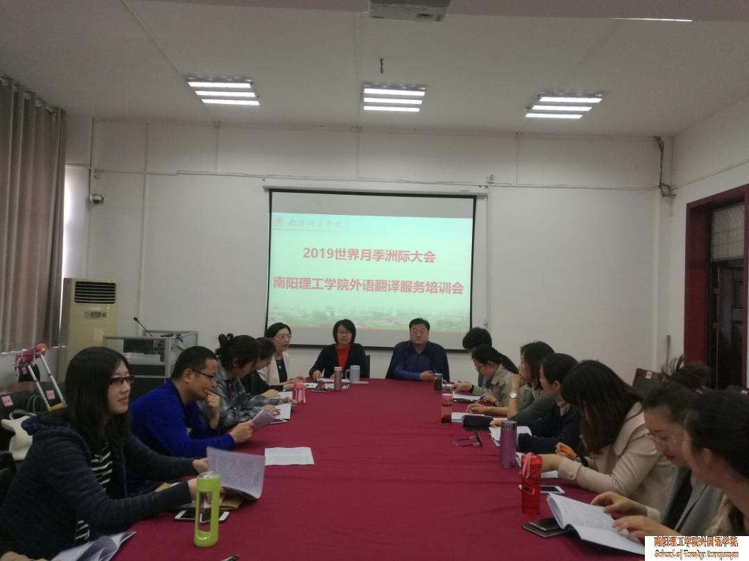 院长海霞从地方本科院校服务地方经济的角度出发,对参与翻译的教师们提出了殷切希望。嘱托教师们在积极响应市政府的号召的同时,一定要充分准备、按时到岗、 服从安排、落实行动、注意形象,要以此为窗口向与会来宾、向世界展示南阳理工学院外语教师的专业知识水平、展现南工人的精神风貌和南阳人的风采魅力。