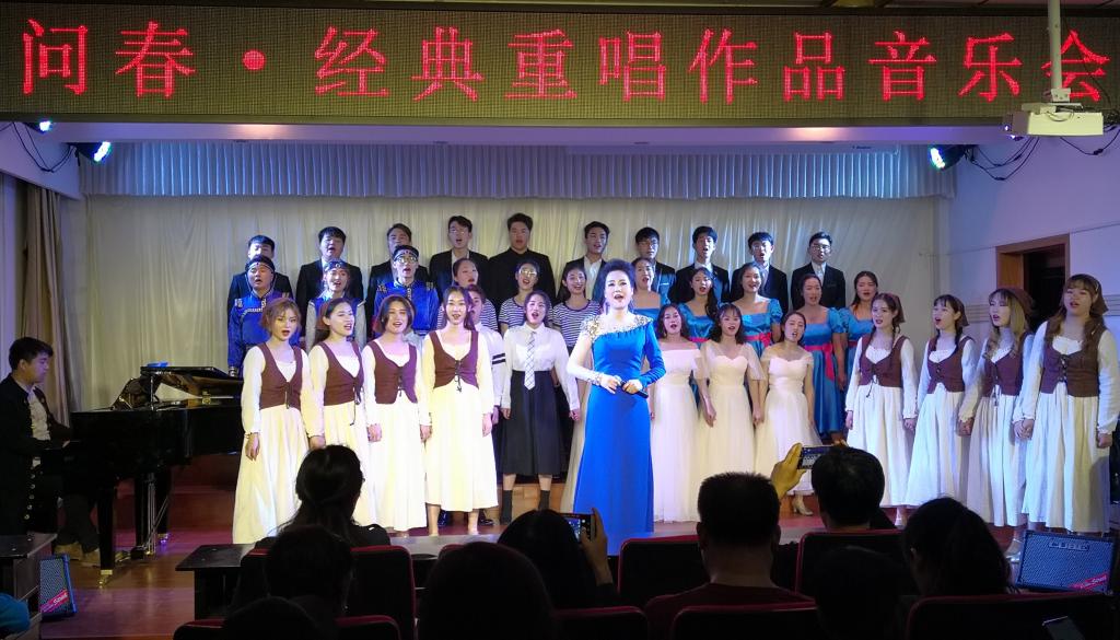 本场音乐会张宁老师与她的34位学生共同演绎了11首经典重唱音乐作品,曲目丰富,形式多样。音乐会在一首致敬改革开放四十周年的歌曲《年轻的朋友来相会》拉开了序幕,俄罗斯歌曲《红梅花儿开》与蒙古民歌《天边》这两首中外民歌虽相隔千万里,却碰撞出绚丽的火花;电影《归心似箭》中的插曲《雁南飞》由男女声四重唱的表演形式展现,让同学们为之倾倒;著名歌剧咏叹调《啊!美丽可爱的姑娘》在展示师生演唱的扎实功底的同时,让大家领略了歌剧艺术的独特魅力;为香港回归而创作的《红旗飘飘》以嘹亮的歌声唤起了慷慨报国的凌云壮志,展现音乐学子对祖国的款款深情,催人奋进,引发观众阵阵掌声;整场音乐会张宁老师带领她的学生们用心用情诠释着每首作品,最后在歌曲《相逢是首歌》中圆满结束了本次音乐会。