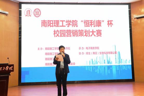 2019年4月23日下午,南阳理工学院“恒利康”杯校园营销策划大赛营销策划和广告创意赛决赛在领创空间报告厅举行,副校长肖泽昌全程观看比赛并为获奖师生团队颁奖,恒利康生物科技股份有限公司副总经理张辉,校地合作处处长赵彦普,审计处处长王富祥,学生处副处长赵东江,教育发展基金管理办公室副主任陈金松,电子商务学院院长王一平、党总支书记逯忆等出席,近300名师生参加。