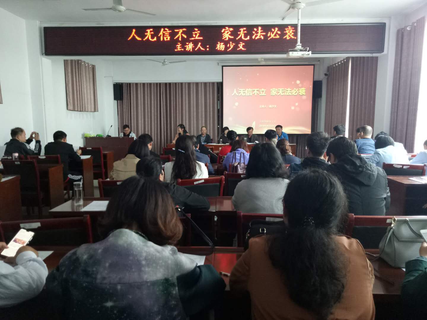 本次会议由杨少文书记主讲,会议中杨书记指出诚信对于工作和生活的重要性,以及如何践行诚信。他结合工作实际,引导教职工强化诚信意识,规范诚信行为。