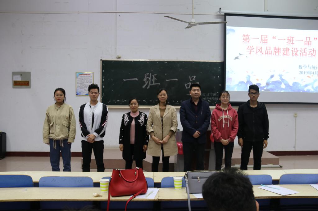 本网讯(学生记者/李霜、王雅芬)4月26日晚,数学与统计学院在6教101教室举办第一届“一班一品”学风品牌建设活动。本次活动有幸邀请到了数学与统计学院团学办主任王满、17经数班学业导师王萌和18经数班学业导师柳静担任评委,以及数学与统计学院院大一和大二全体学生参加了本次活动。