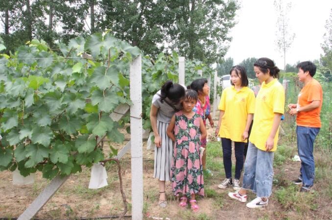 队员们还了解到近几年在国家技术和资金的帮扶下,孩子的父亲承包了一片葡萄园,随后,同学们跟随孩子和婶婶来到葡萄园,实地考察葡萄园收成情况,给出增加品种多样性、通过网络增加销售渠道等建议。