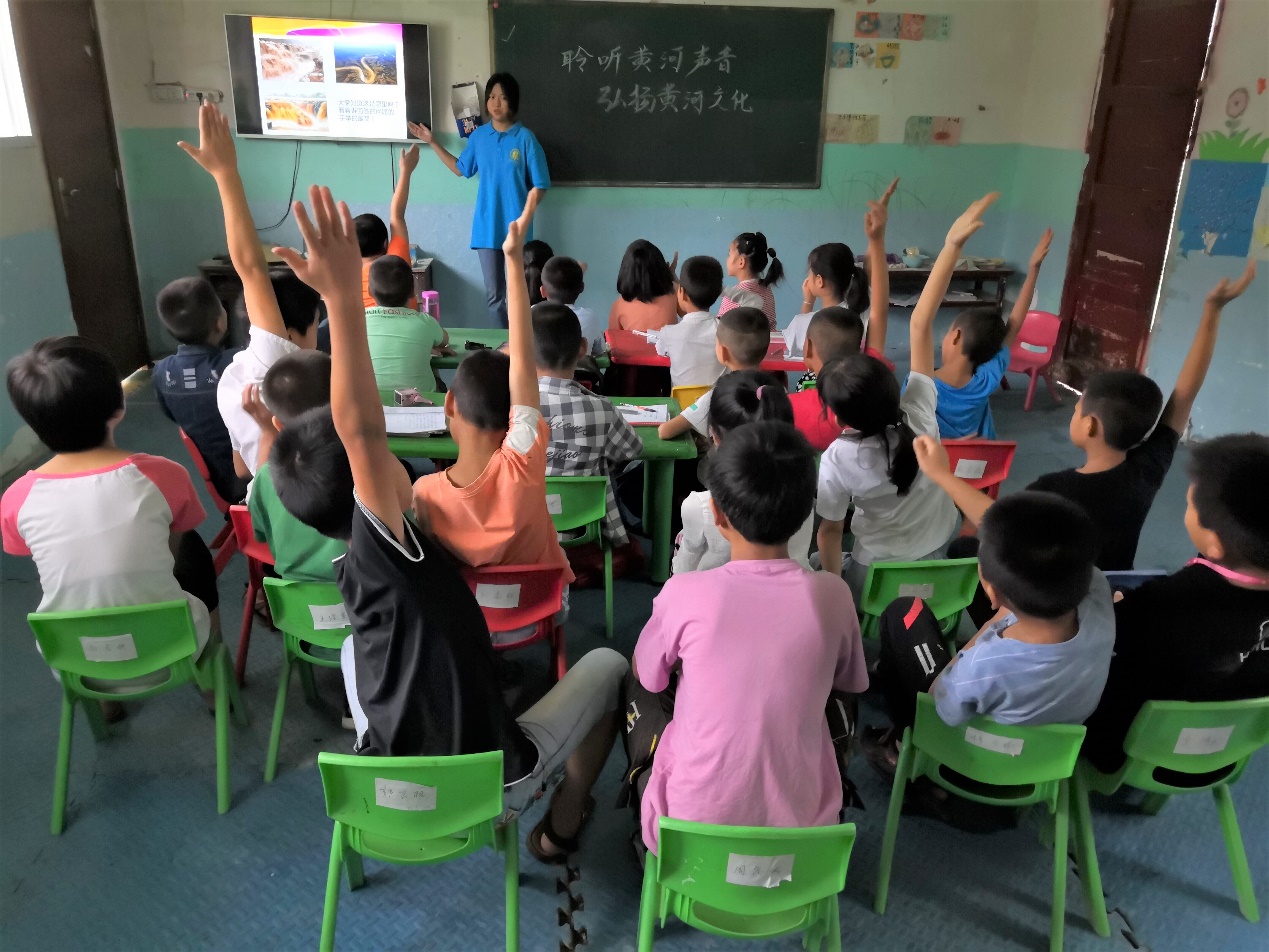 讲述黄河故事。志愿者走进课堂,给同学们讲述黄河故事,加深同学们对黄河文化的认识;和同学们一起背诵有关黄河的诗词……在欢声笑语中,将黄河文化根植于每位同学的心中,让黄河文化得以传承、延续。