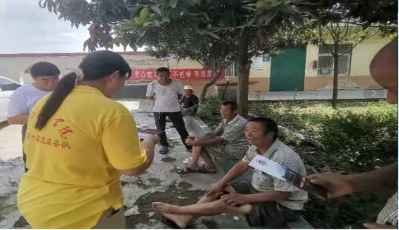 为加强法制教育,增强村民学法、遵法、守法、用法意识,队员们为当地村民发放普法宣传单,讲解新民法。