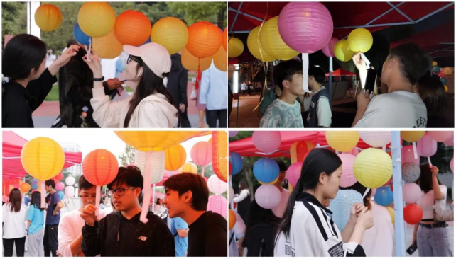 志愿者事先将有关心理测试题和心理健康知识问答粘贴在“花灯”上,精致的“花灯”吸引了不少同学的眼球,开始前便已有众多同学驻足询问。活动期间,同学们两人一组,一个参与答题,一个制作灯笼,答对灯谜即可赢取灯笼。现场的汉服表演和歌曲演唱更是掀起了活动的高潮,整个广场气氛热烈,其乐融融,持续了两个多小时。