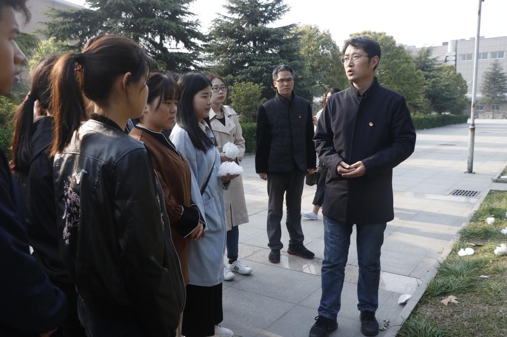 随后,师生们有序近前瞻仰纪念碑,校团委书记康磊引领同学们重温历史,追忆为国献身的铮铮铁骨,感受革命先烈的精神力量。