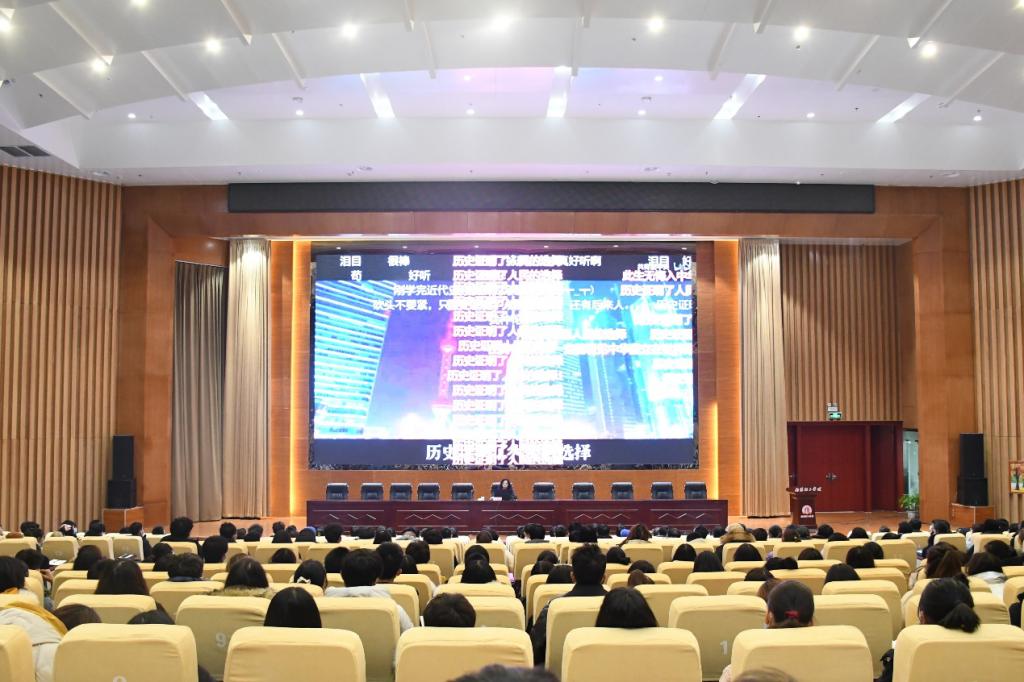 本网讯(学生记者/程路尧)12月8日晚,我校“入团积极分子培训班”第三讲在东南校区第三报告厅顺利举办。此次会议邀请团中央“青年讲师团”讲师、河南省团校王卫媛老师为入团积极分子授课,各教学院组织部负责人、团支书代表参加培训;校团委副书记高亢、校团委挂职副书记、张仲景国医国药辅导员王旭出席会议。
