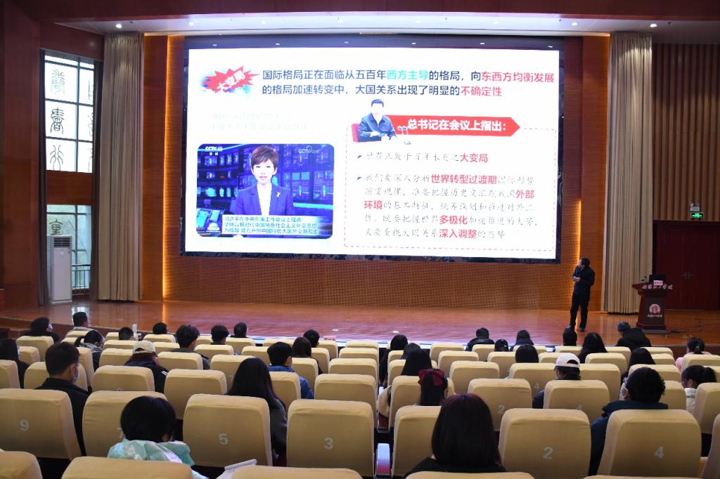 安士伟客观介绍了后疫情时代我国所处的国际形势,深刻阐述了我国的外交战略,为学员们上了一堂生动的国际形势教育课、制度自信教育课和习近平新时代中国特色社会主义外交思想教育课。最后,安士伟与学员们分享了三点启示:一是要处理好人际关系,营造温馨环境;二是要干好自己事情,立志成长成才;三是要珍惜大好机遇,建功民族复兴。
