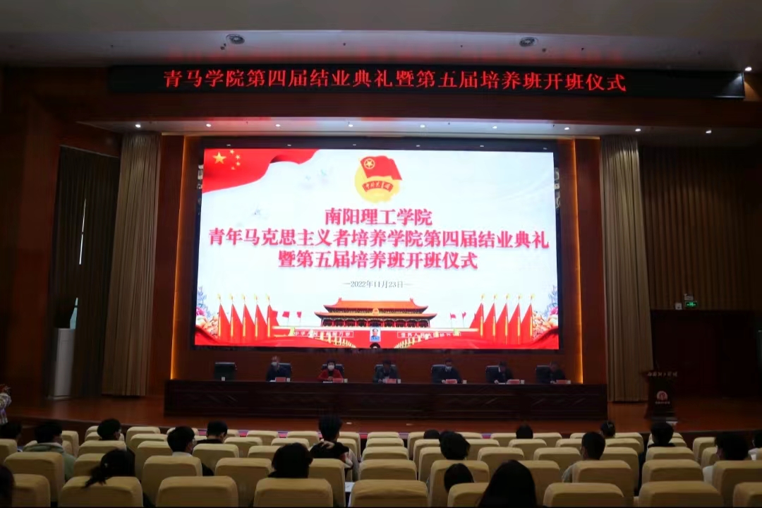 本网讯(记者/袁思源 徐思 张宝杰)11月23日,我校青马学院第四届结业典礼暨第五届培养班开班仪式在第三报告厅顺利举行。副校长葛晨光、组织部、宣传部、学生处、马克思主义学院、团委主要负责人出席典礼。典礼由郭兴华主持。校团委全体同志、青马学院全体学员、入团积极分子、校院两级学生干部代表共计180余人参加开班典礼。